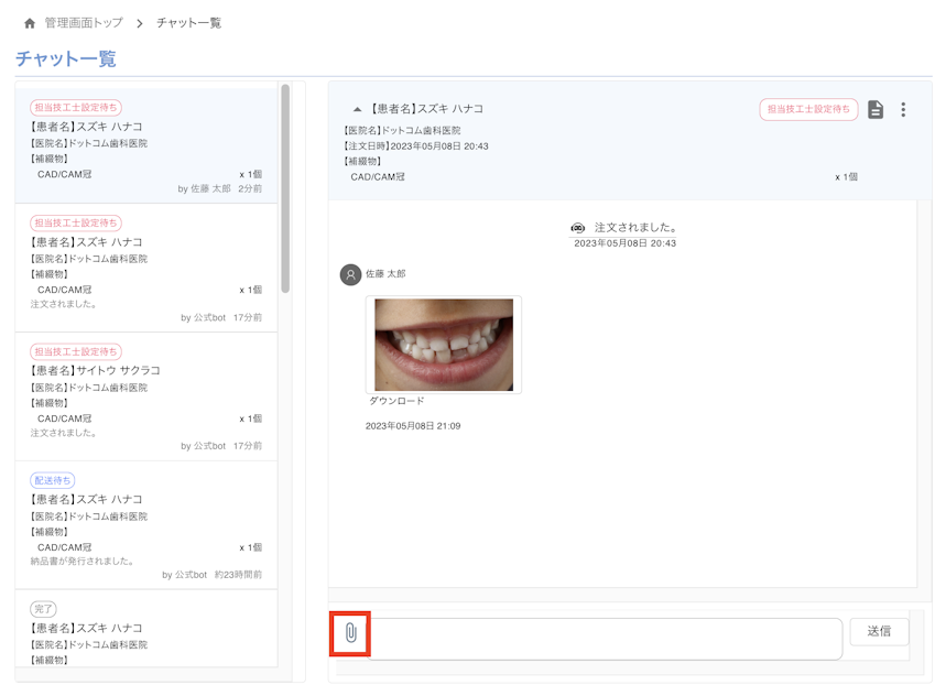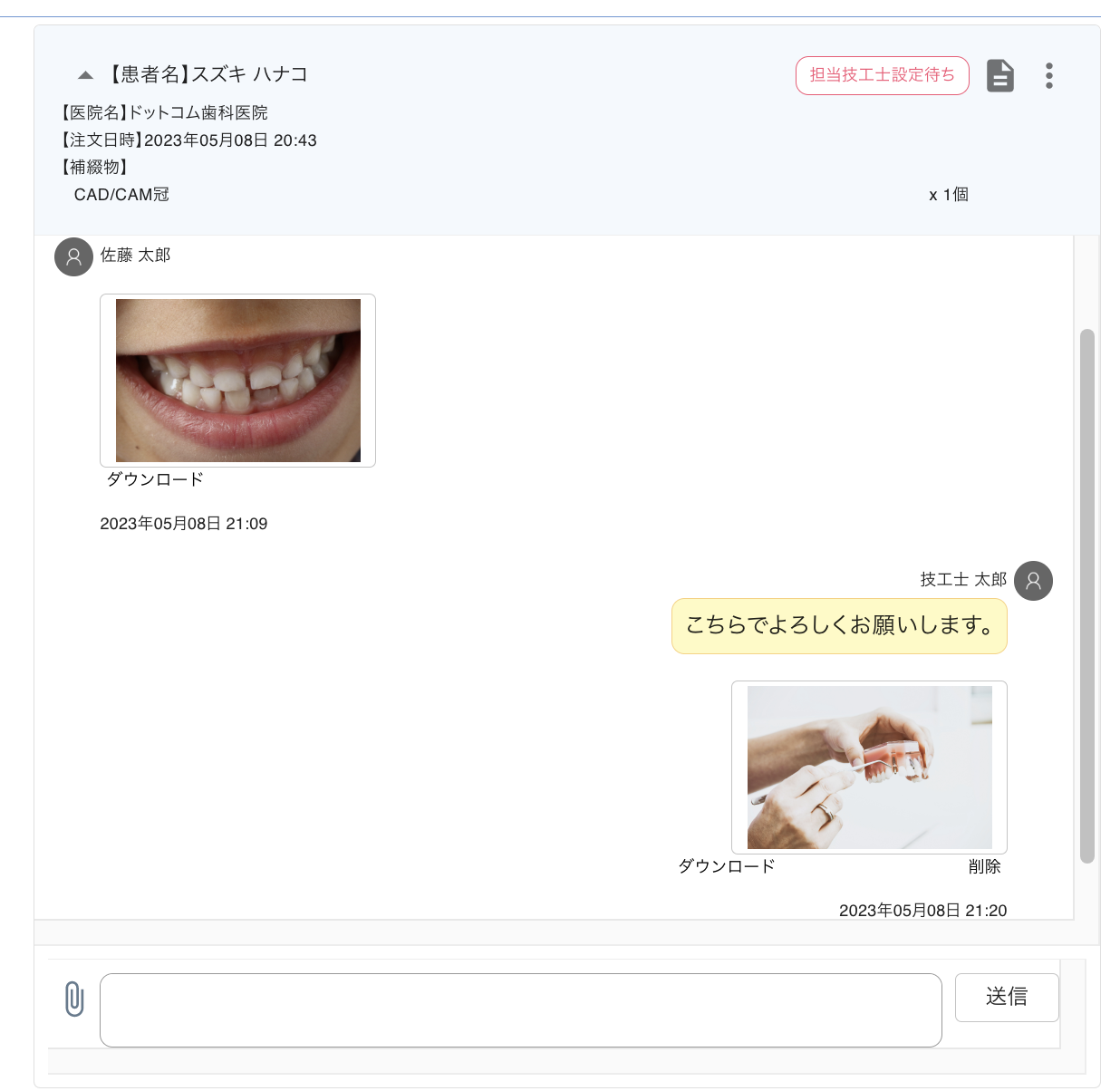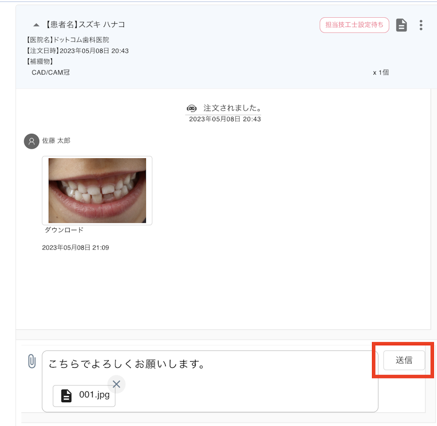 ※歯科医院が技工物を発注してからご利用できる機能です。