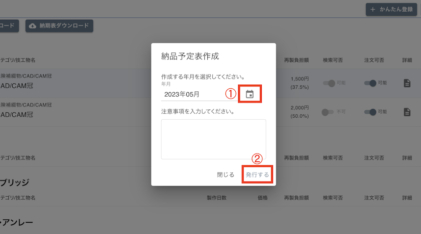 - 納期表を作成する年月を選択します。