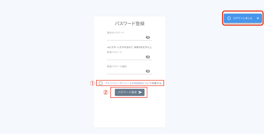 3. ログインができたら、新しいパスワードを設定してください。パスワードを設定したら、