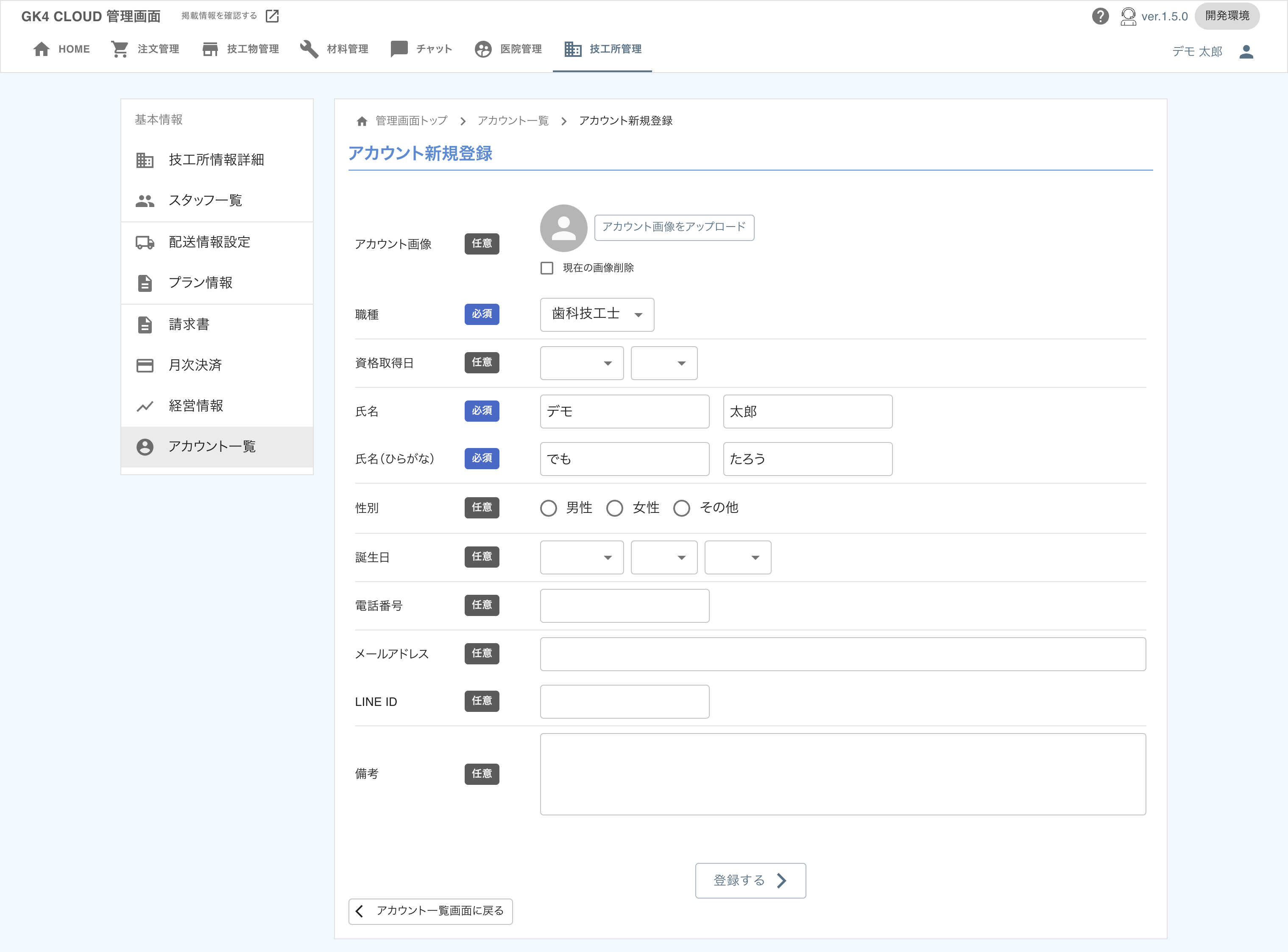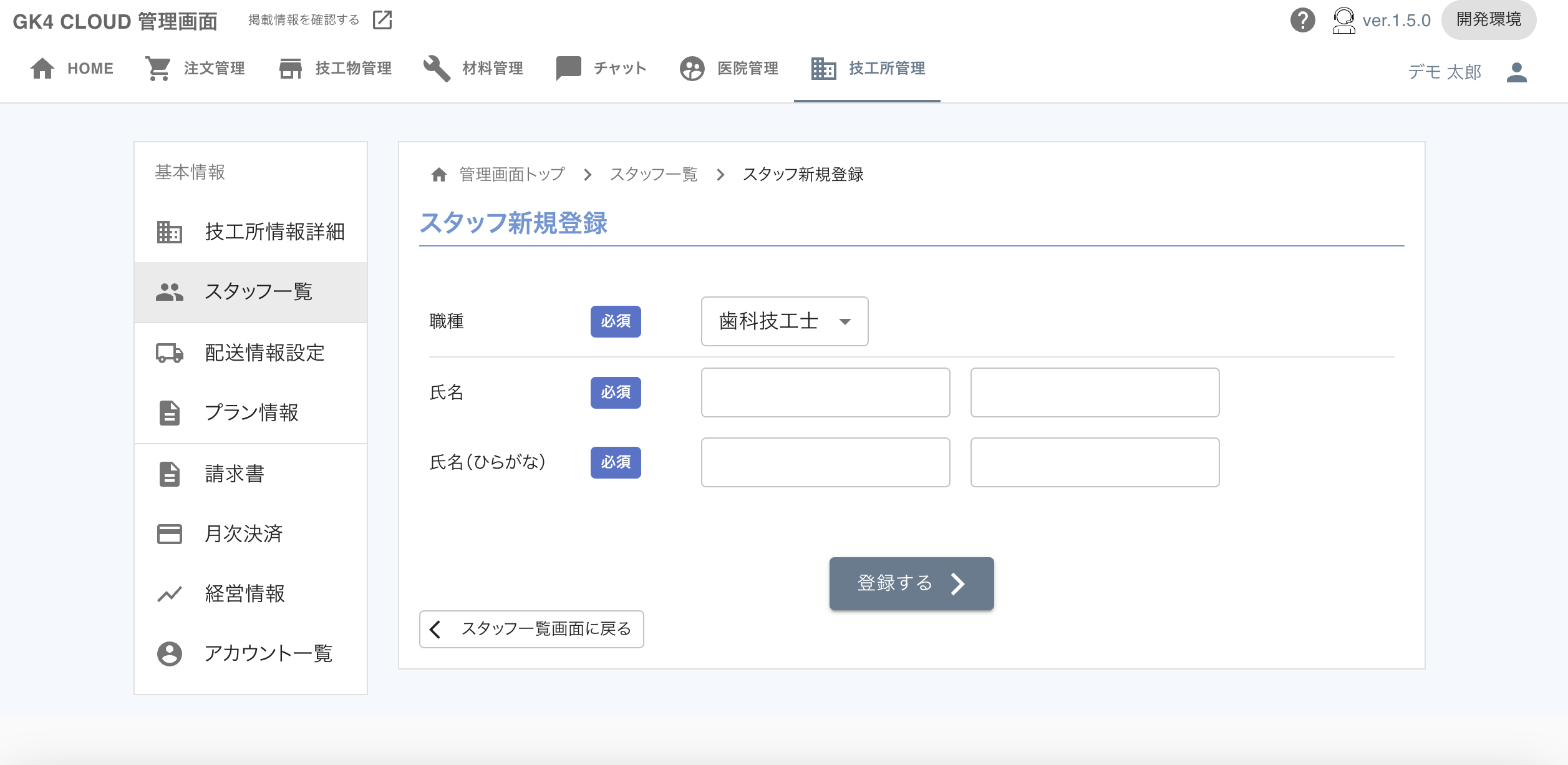 スタッフを登録しておくと、歯科医院が技工士を指名できるようになります。