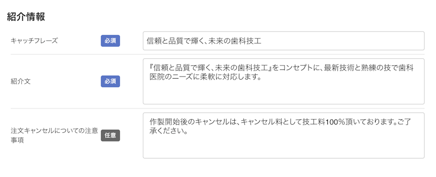 [紹介情報]には、技工所の紹介文などを入力してください。
