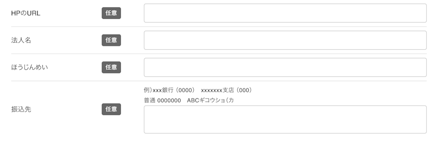 各任意の項目は、当てはまる項目がある場合、入力してください。