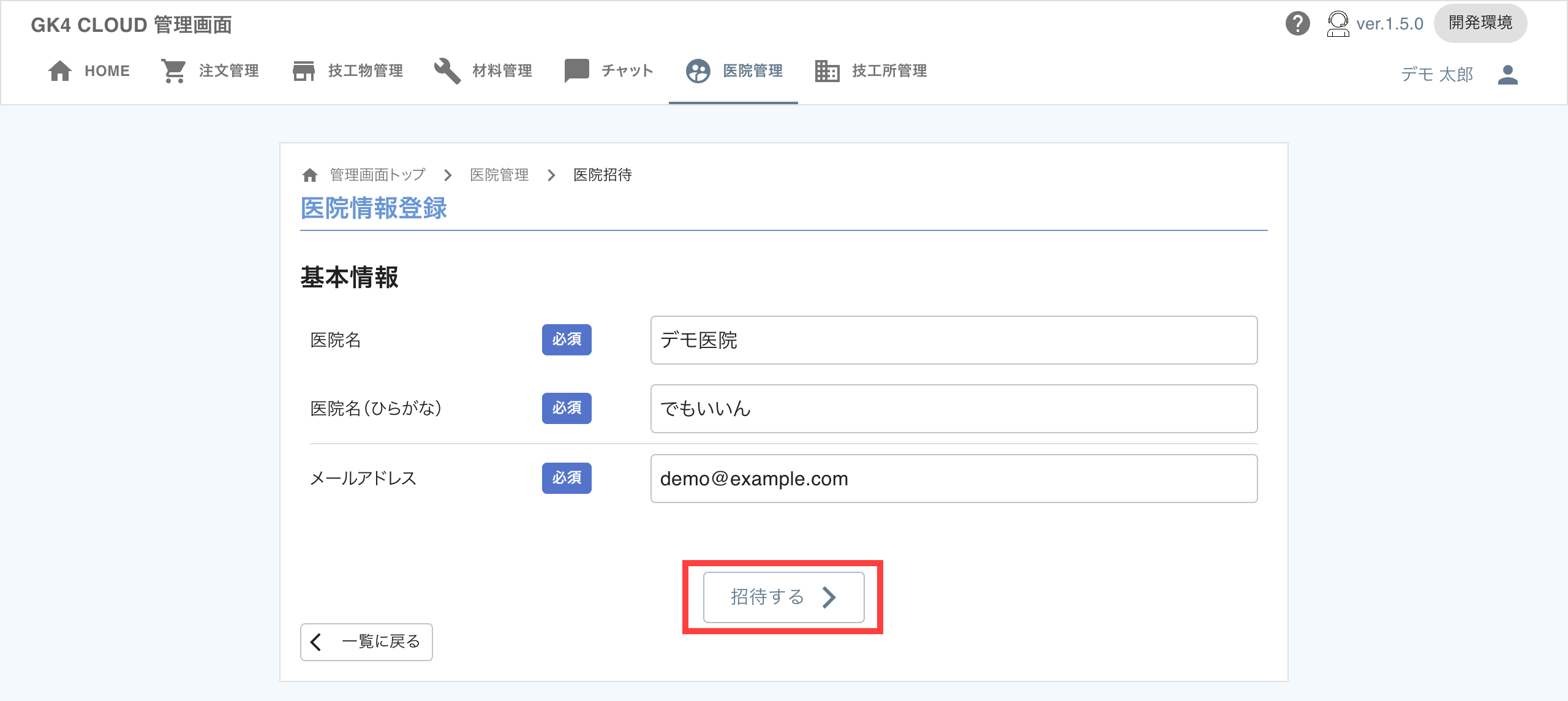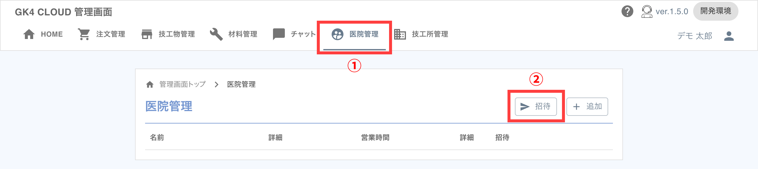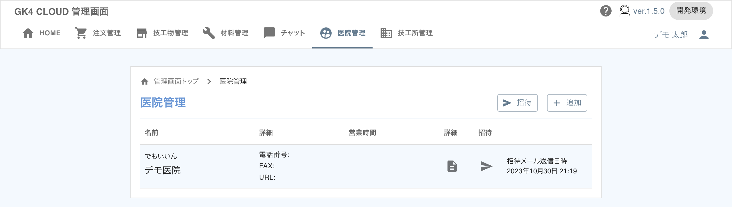 歯科医院を招待することで、注文管理などを行うことができます。手順は以下の通りです。