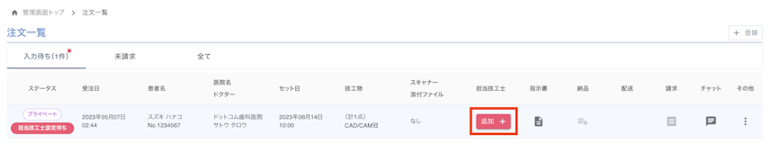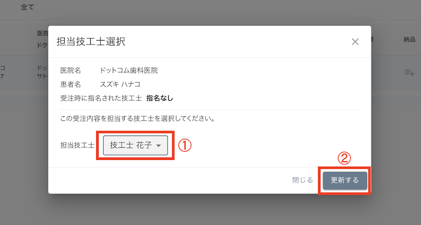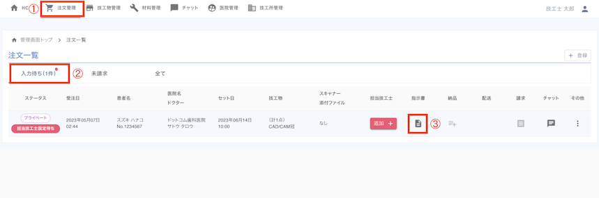 このページでは、指示書の確認〜担当技工士の選択までの手順をご紹介します。