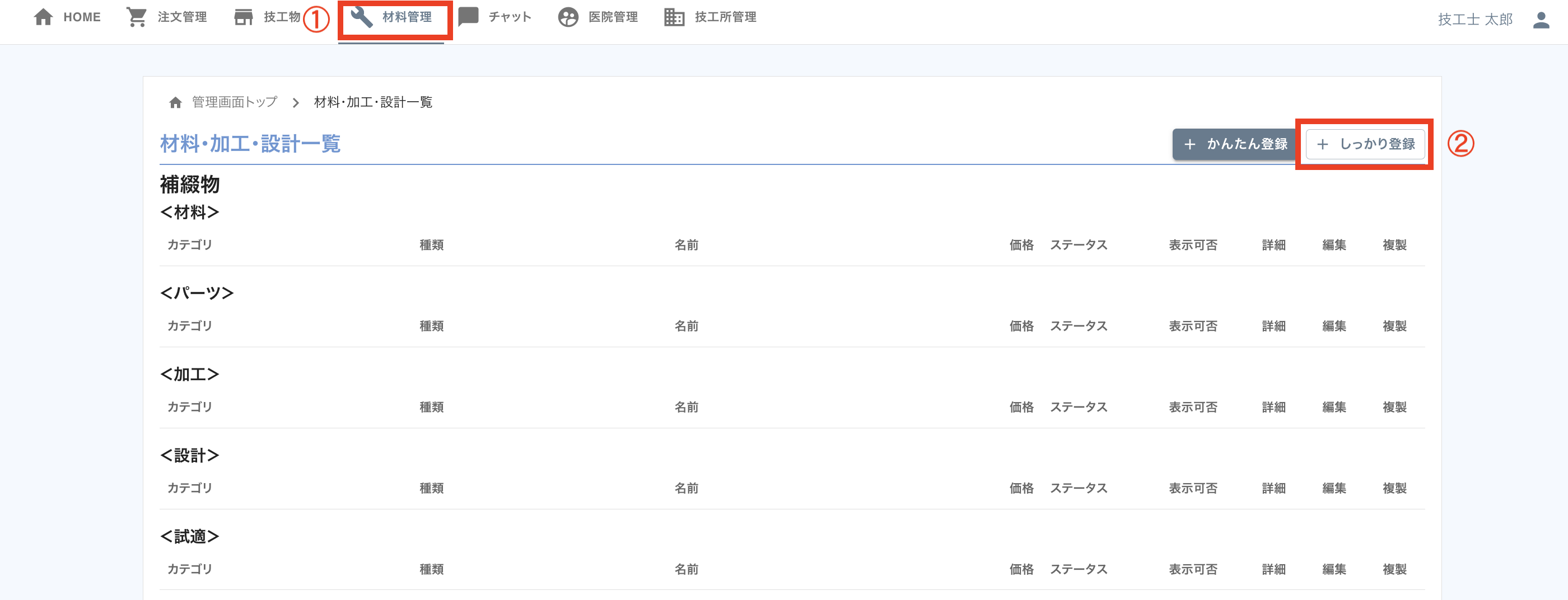 このページでは、材料の【しっかり登録】手順をご紹介します。